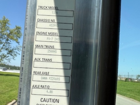 2015 Kenworth T-370 GVWR 33,000, Paccar MX-7 240hp. 7 Liter Diesel Allison 2500HS automatic, rear axle Dana, Ratio 4.88, D.O.T inspection done with all repairs completed, new A/C compressor, Dryer, new drive axle brakes, all lights operational, air ride chassis, very good matching rubber, Truck was on a maintenance agreement with Ryder truck rental